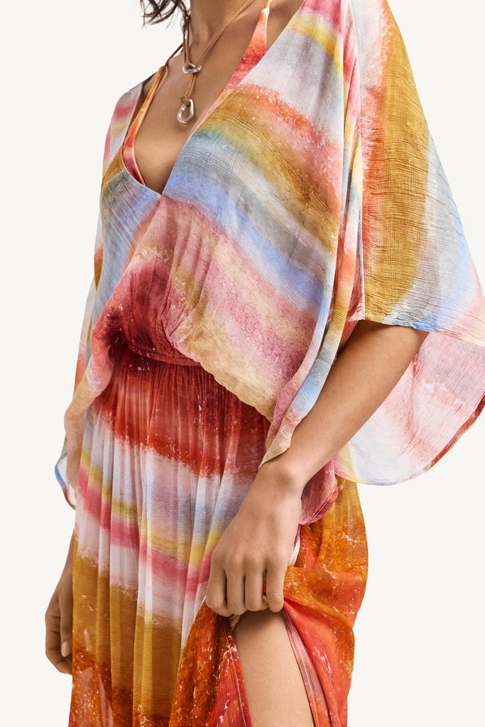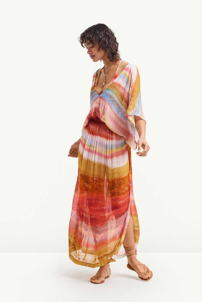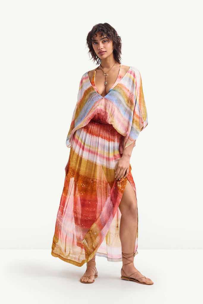 Lightweight and effortlessly elegant, the Petra Caftan is crafted from a sheer chiffon with a flattering elastic waist and deep V-neckline. Finished with a breezy side slit, it's an easy statement piece for your next getaway.