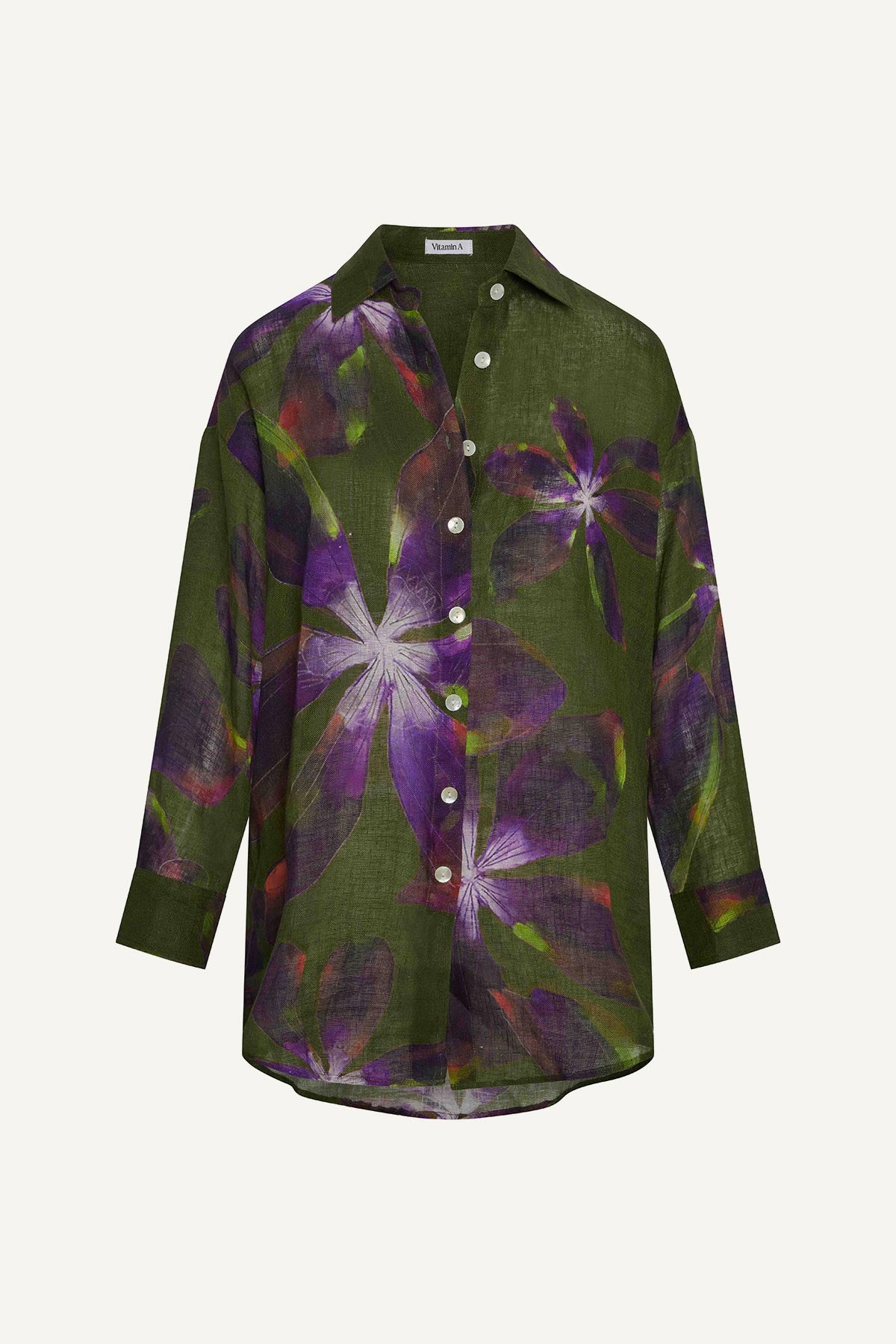 Playa Linen Boyfriend Shirt - Watercolor Orchid Ecolinen