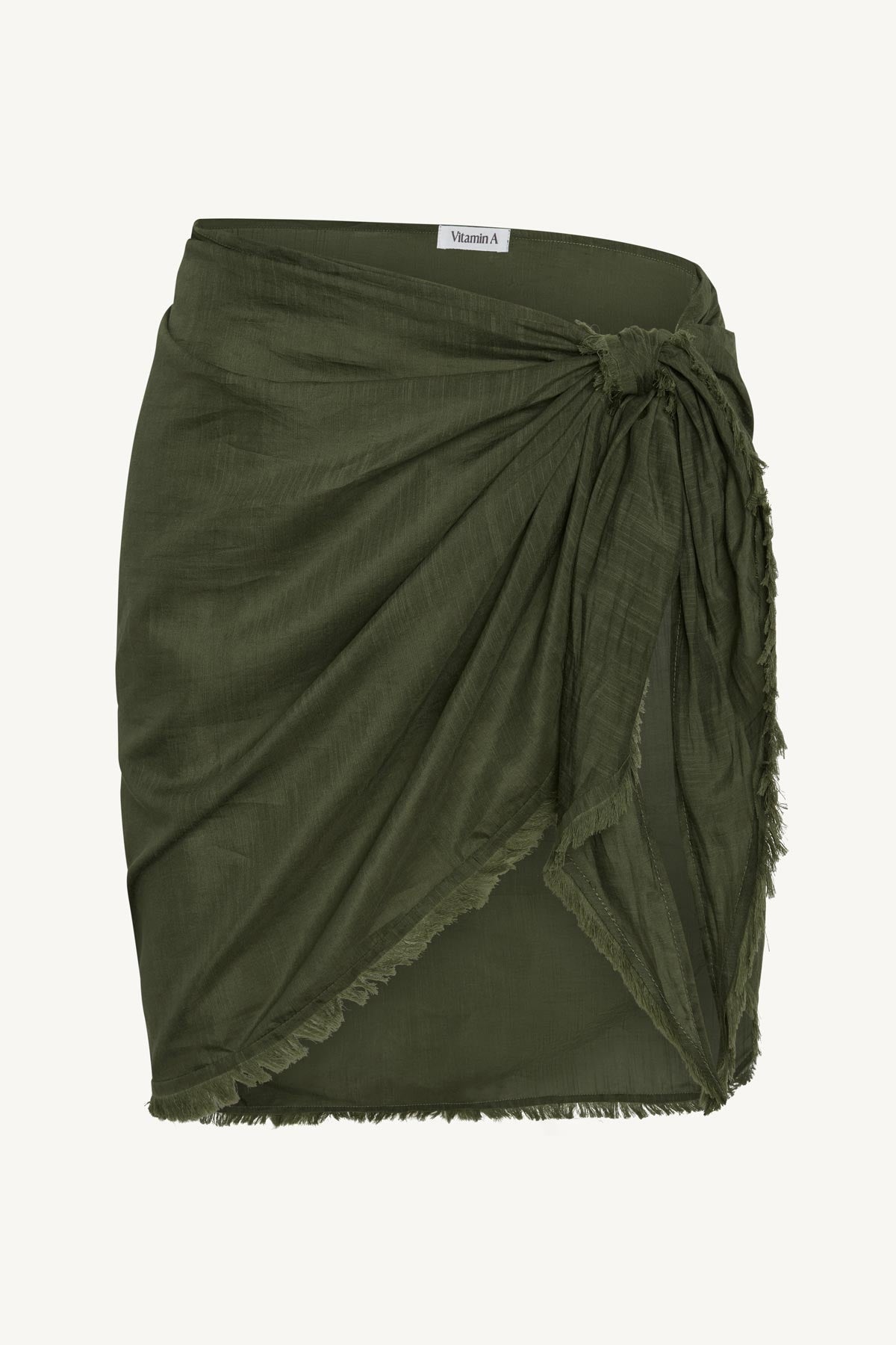 The Soleil Sarong is crafted with a soft, silk-like handfeel and subtle slub texture for depth and dimension. Finished with delicate fringe detailing, it’s the perfect lightweight layer to tie on over swim.